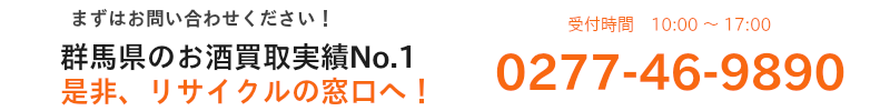 高額なコレクションのお酒も、古いお酒も、箱がなくても、お酒に詳しくなくても、群馬県お酒買取実績No.1の当店に安心して買取をお任せください!